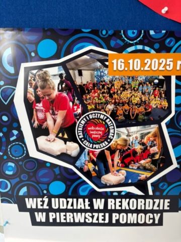Bardzo ciekawą akcją jest organizowanie przez fundację od 2013 roku Bicia Rekordu w pierwszej pomocy. Kolejny raz wzięliśmy w nim udział 16 października. W wydarzeniu wzięło udział 130 uczniów z naszej szkoły.
