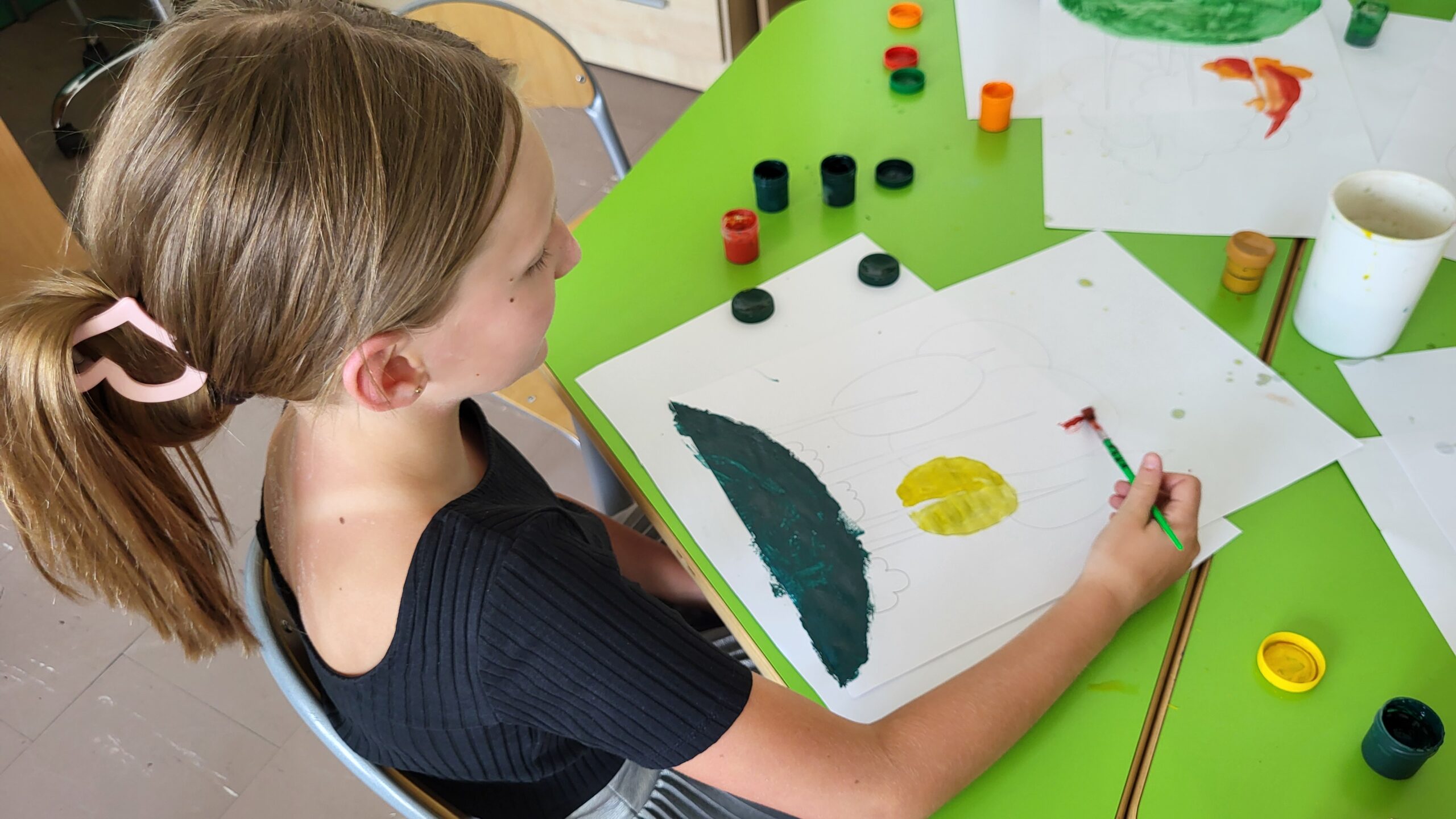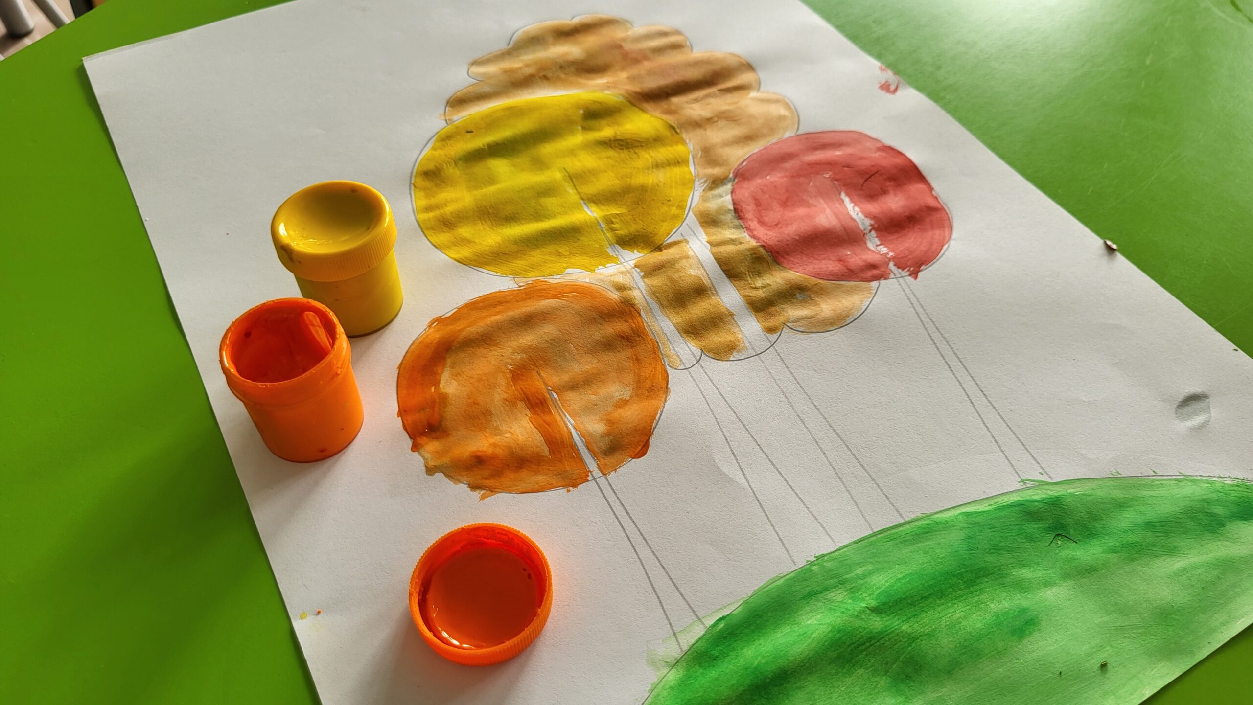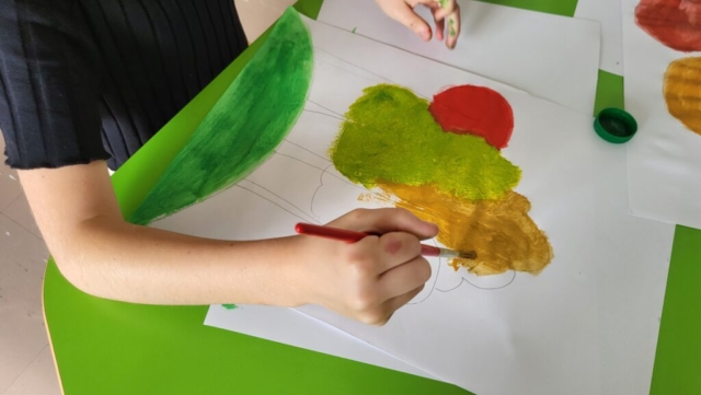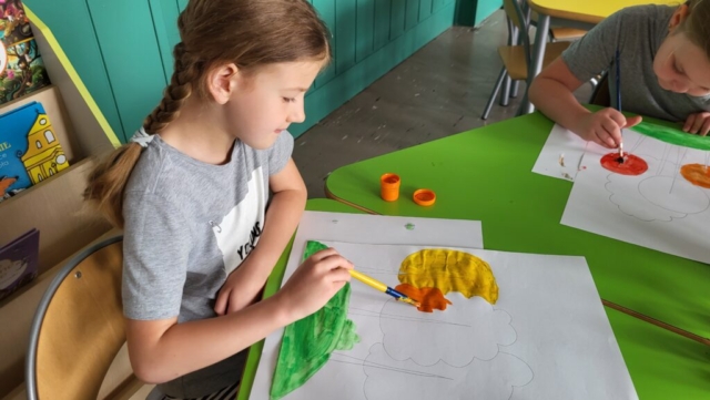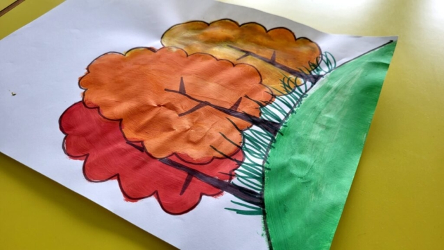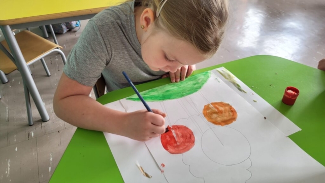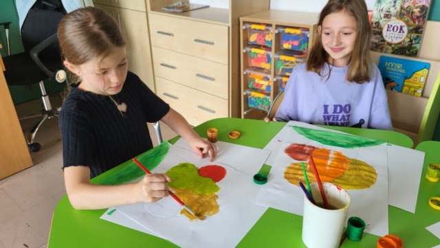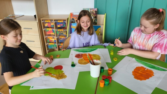 Motywem przewodnim była jesień – a dokładniej barwne drzewa, mieniące się w odcieniach żółci, pomarańczu i czerwieni. Dzięki temu, już od pierwszych dni września świetlica „witała” uczniów pięknymi pracami, które nie tylko cieszą oko, ale też przypominają o tym, że twórczość nie zna granic czasowych – można tworzyć z myślą o przyszłości.