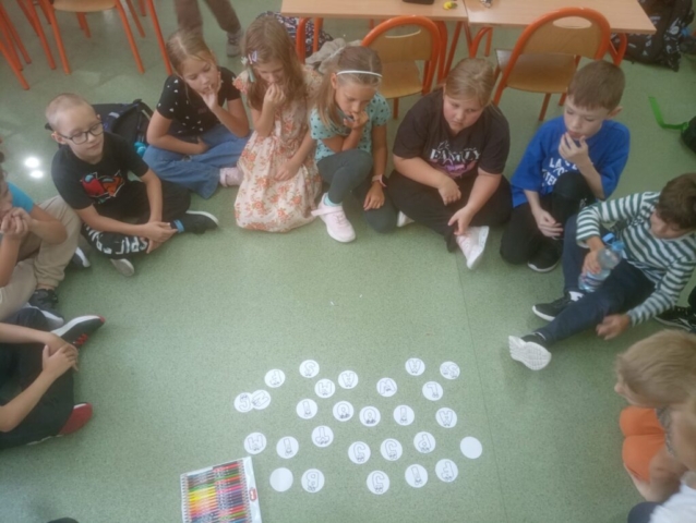 W klasach I-III świętowanie rozpoczęło się od obejrzenia krótkiego filmu o małej Vashti, który powstał na podstawie książki Petera H. Reynoldsa „Kropka”. Po projekcji uczniowie omówili jego treść skupiając się na przesłaniu, czyli odkrywaniu własnych talentów, poznaniu mocnych stron i wyrabianiu wiary we własne siły. Następnie każdy z uczniów opowiedział o swoich talentach oraz o tym, w czym czuje się „mocny” i jak może pomóc swym talentem innym. Uczniowie świętowali ten wspaniały dzień ubierając się w ubrania w kropki i grochy, bawiąc się i tworząc wspaniałe obrazy. Zastanawiali się co może powstać z jednej malutkiej kropki i okazało się, że różne cuda! Najfajniejsze podczas tych zajęć było dla dzieci to, że gdy otrzymały kartkę z narysowaną kropką stworzyli z niej prawdziwe dzieło. Takie zajęcia są powodem do rozmów, odkrywania rozwijania i pielęgnowania w dziecku odwagi, pewności siebie, kreatywności, talentów, predyspozycji oraz poczucia własnej wartości. Zajęcia bardzo podobały się uczniom, którzy chętnie i aktywnie brali w nich udział.