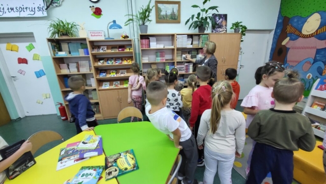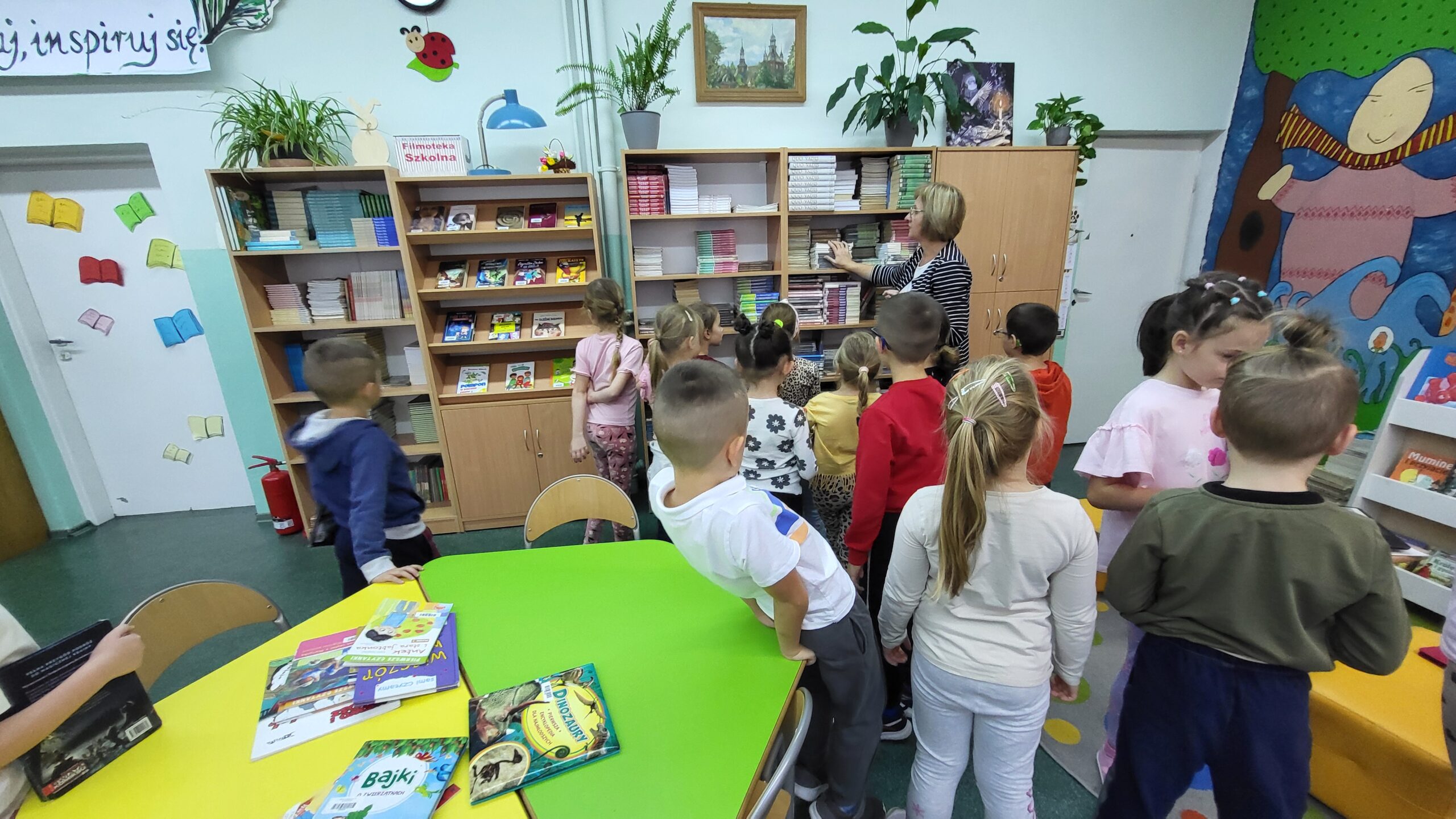 W ramach obchodów Międzynarodowego Miesiąca Bibliotek Szkolnych uczniowie klasy 1A szkoły Podstawowej nr 5 w Andrychowie wzięli udział w wyjątkowych zajęciach pod hasłem „Poznajemy bibliotekę szkolną i jej skarby”. Spotkanie miało na celu zapoznanie najmłodszych czytelników z magicznym światem książek oraz zasadami korzystania z biblioteki.