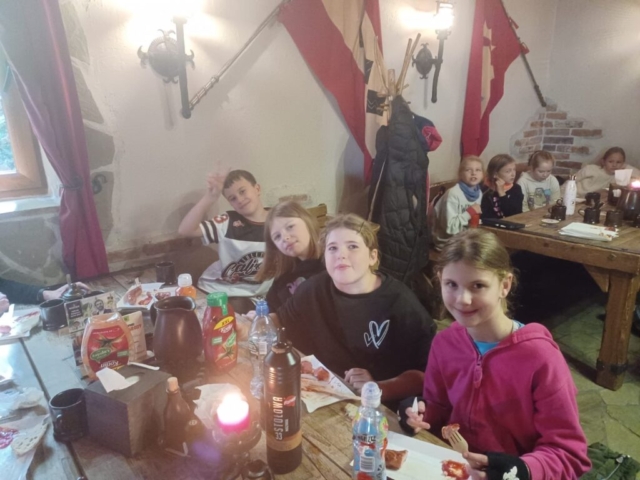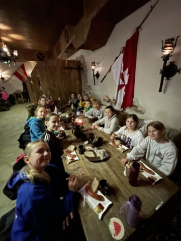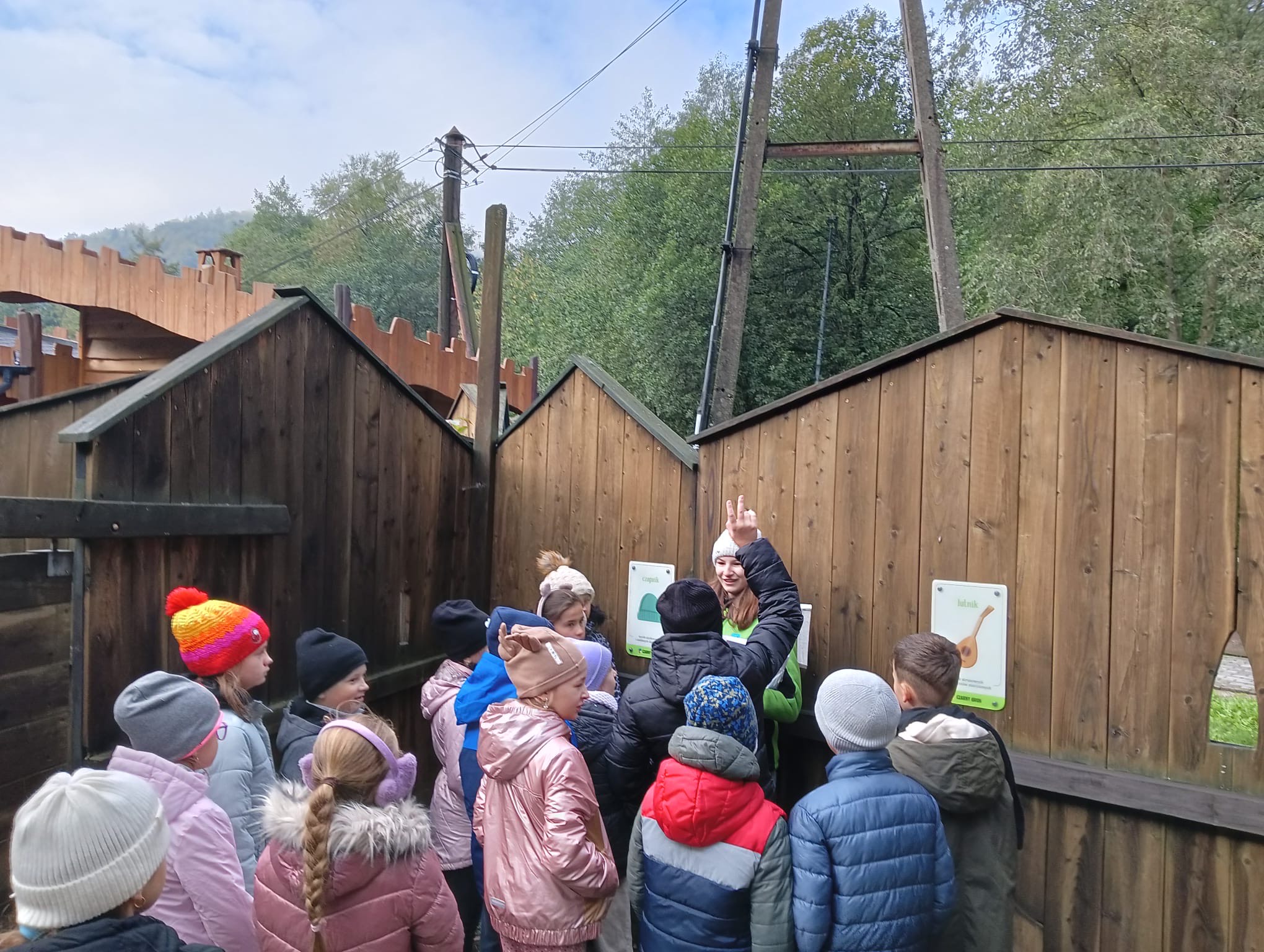 Uczniowie klas czwartych naszej szkoły wzięli udział w wyjątkowej wycieczce integracyjnej na Czarny Groń w Rzykach. Podczas warsztatów „Śladami ginących zawodów” dzieci mogły zetknąć się z tradycyjnymi rzemiosłami i własnoręcznie przekonać się, jak wiele wysiłku i umiejętności wymaga praca ludzkich rąk, co pozwoliło im docenić wartość dawnych zawodów i kształtować szacunek dla tradycji. Kolejnym punktem programu była wizyta w Magicznej Osadzie w Rzykach, gdzie czekało na uczniów mnóstwo atrakcji, zabaw na świeżym powietrzu i aktywnych form spędzania czasu sprzyjających integracji, rozwijaniu kreatywności oraz budowaniu zaufania. Zwieńczeniem wspólnego dnia był posiłek z pysznymi kiełbaskami, który stał się okazją do rozmów, śmiechu i radosnej zabawy, tworząc wyjątkową atmosferę i wzmacniając więzi między uczniami. Wyjazd udowodnił, że integracja może łączyć naukę z tradycją, a wspólne doświadczenia stają się fundamentem dobrych relacji i pozytywnej atmosfery w klasie.